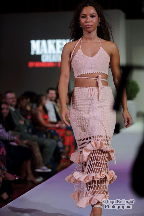 Each piece is entirely handmade using traditional crochet techniques, designed to move with the body and celebrate individuality.